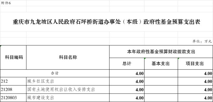 6.2025年九龍坡區(qū)人民政府石坪橋街道辦事處(本級)政府性基金預算支出表
