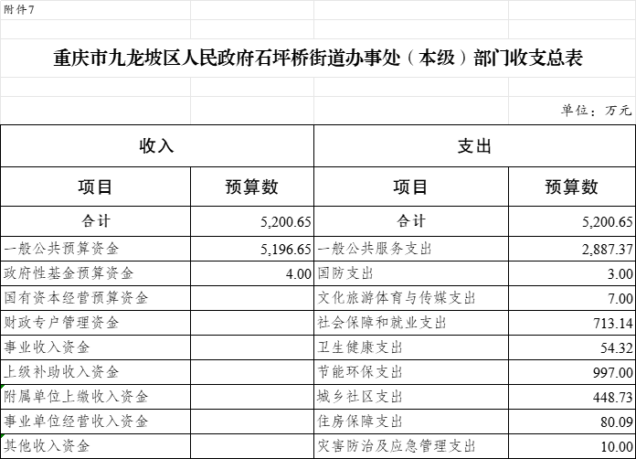 7.2025年九龍坡區(qū)人民政府石坪橋街道辦事處(本級)單位收支總表