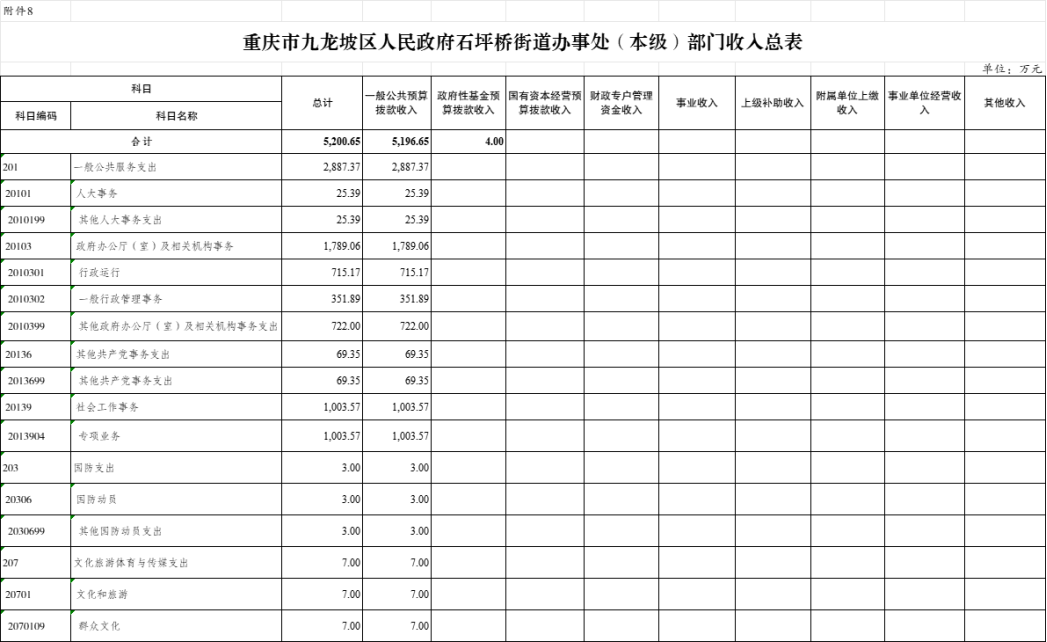 8.2025年九龍坡區(qū)人民政府石坪橋街道辦事處(本級)單位收入總表