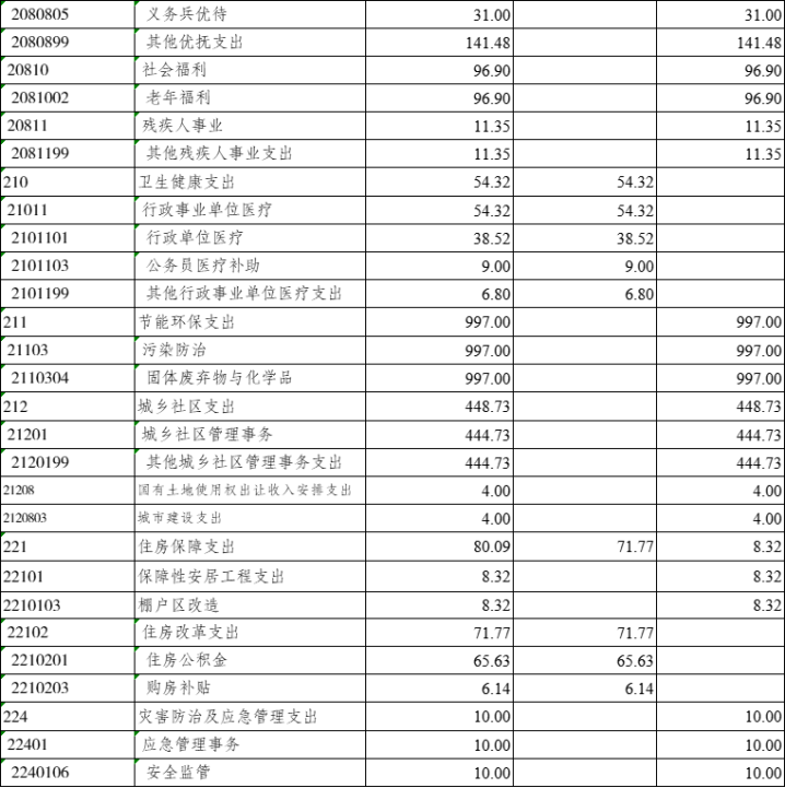 (二)支出預算:2025年年初預算數5200.65萬元,其中:一般公共服務支出預算2887.37萬元,國防支出預算3萬元,文化旅游體育與傳媒支出預算7萬元,社會保障和就業(yè)支出預算713.14萬元,衛(wèi)生健康支出預算54.32萬元,節(jié)能環(huán)保支出預算997萬元,城鄉(xiāng)社區(qū)支出預算448.73萬元,住房保障支出預算80.09萬元,災害防治及應急管理支出10.00萬元。支出預算較2024年減少145.92萬元,主要是基本支出預算增加132.63萬元,項目支出預算減少278.55萬元。