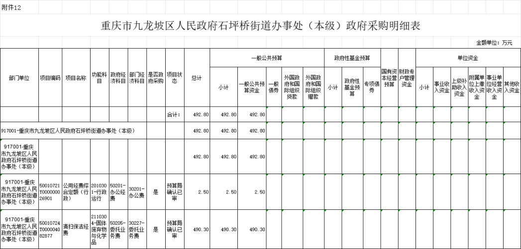 12. 2025年九龍坡區(qū)人民政府石坪橋街道辦事處(本級)政府采購明細表