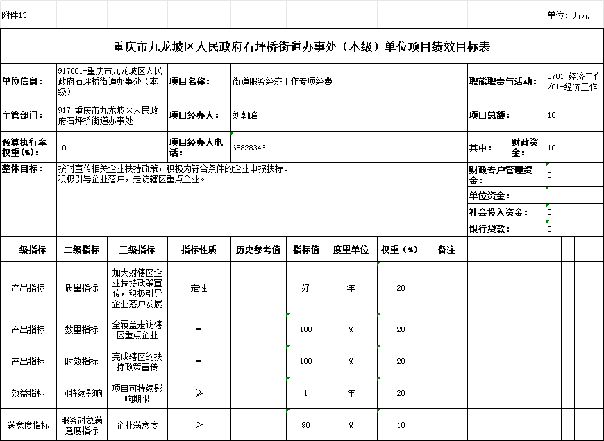 13.2025年九龍坡區(qū)人民政府石坪橋街道辦事處(本級)單位項目績效目標表