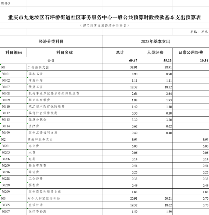 3.2025年九龍坡區(qū)石坪橋街道社會(huì)事務(wù)服務(wù)中心一般公共預(yù)算財(cái)政撥款基本支出預(yù)算表