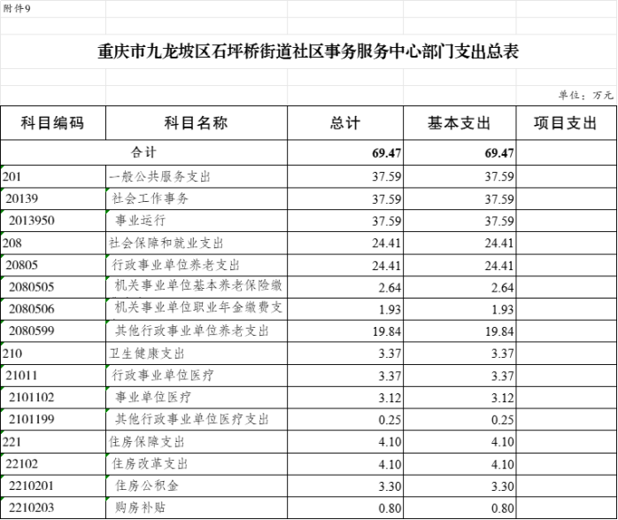 9.2025年九龍坡區(qū)石坪橋街道社會(huì)事務(wù)服務(wù)中心單位支出總表(功能科目分類到項(xiàng))