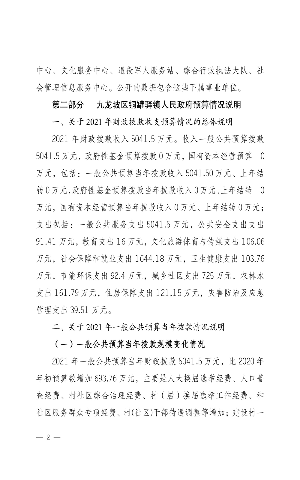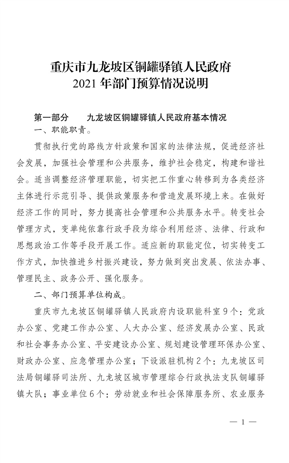重慶市九龍坡區(qū)銅罐驛鎮(zhèn)人民政府2021年部門預算情況說明