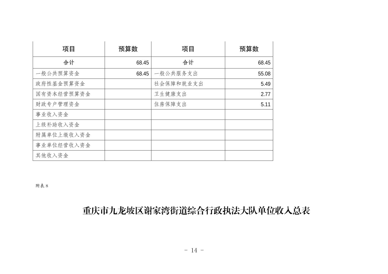 重慶市九龍坡區(qū)謝家灣街道綜合行政執(zhí)法大隊2023年預算公開情況說明