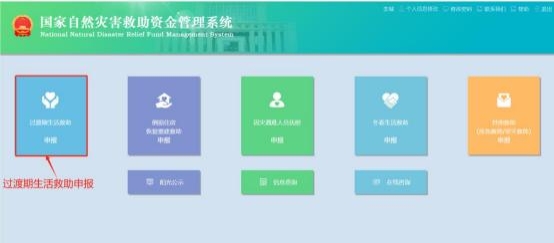 第一步:進(jìn)入主頁后,點(diǎn)擊【過渡期生活救助申報】。如圖6-1