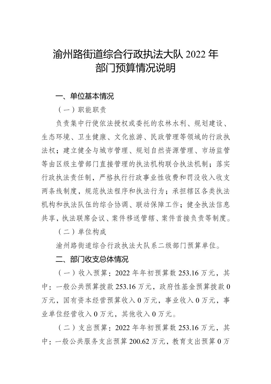 重慶市九龍坡區(qū)渝州路街道綜合行政執(zhí)法大隊(duì)2022年部門預(yù)算情況說明