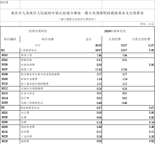 3.2024年九龍坡區(qū)一般公共預(yù)算財(cái)政撥款基本支出預(yù)算表