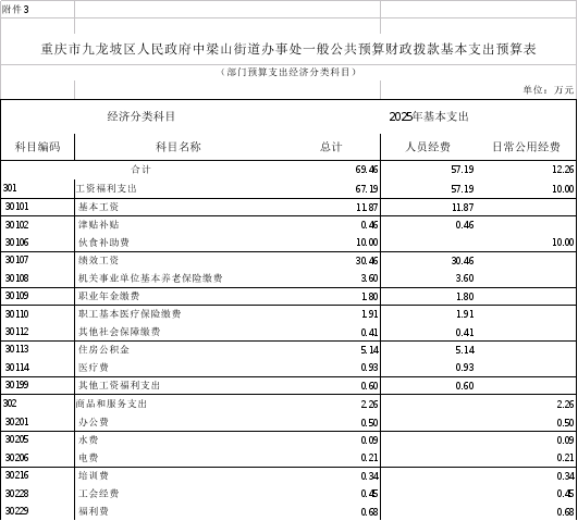 3.2025年九龍坡區(qū)一般公共預算財政撥款基本支出預算表