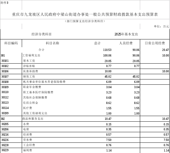 3.2025年九龍坡區(qū)一般公共預(yù)算財(cái)政撥款基本支出預(yù)算表