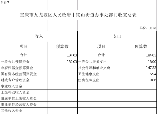 2025年政府性基金預算收入0萬元,政府性基金預算支出0萬元,比2024年增加0萬元。重慶市九龍坡區(qū)中梁山街道便民服務中心(退役軍人服務站)2025年無使用政府性基金預算撥款安排的支出。