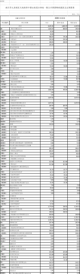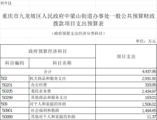 11.2026年九龍坡區(qū)人民政府中梁山街道辦事處一般公共預(yù)算財政撥款項目支出預(yù)算表