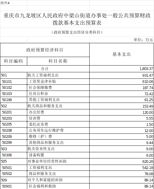 4.2026年九龍坡區(qū)人民政府中梁山街道辦事處一般公共預(yù)算財政撥款基本支出預(yù)算表