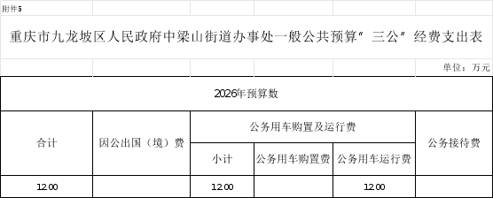 5.2026年九龍坡區(qū)人民政府中梁山街道辦事處一般公共預(yù)算三公經(jīng)費支出表