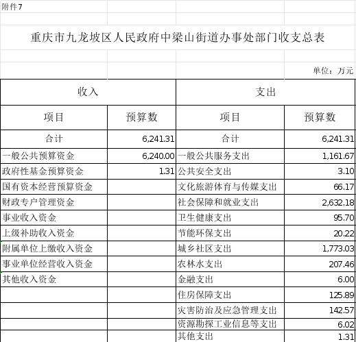7.2026年九龍坡區(qū)人民政府中梁山街道辦事處收支總表