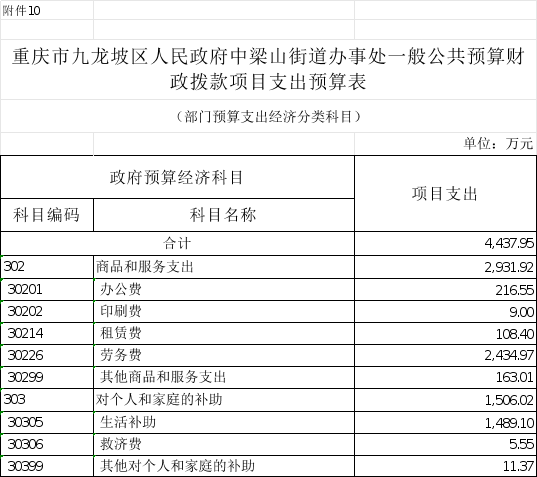 10.2026年九龍坡區(qū)人民政府中梁山街道辦事處一般公共預(yù)算財政撥款項目支出預(yù)算表