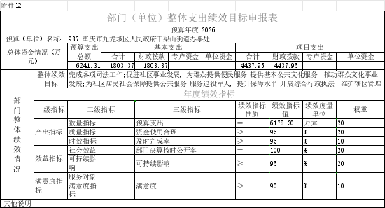 12. 2026年九龍坡區(qū)人民政府中梁山街道辦事處部門整體績效目標(biāo)表