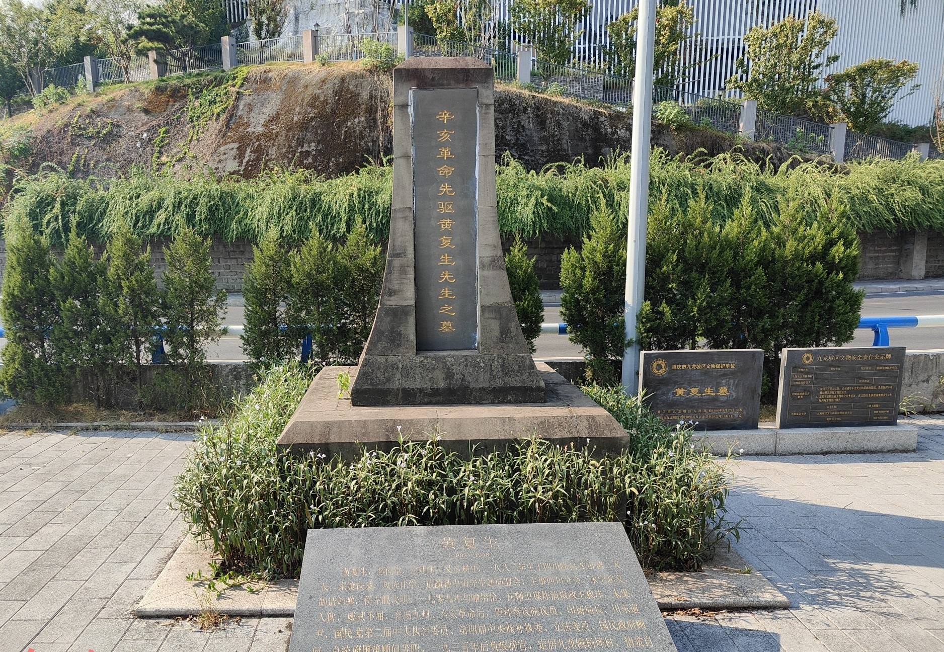 黃復生墓修建于1949年,1993年2月從直港大道搬遷至黃桷坪街道灘子口社區(qū)官家林楊九路旁。墓坐北朝南,面積10.24平方米,以條石砌筑,墓碑通高3.2米,楷體豎式陰刻“辛亥革命先驅黃復生之墓”;正方形底座邊長2.6米,碑座從右至左陰刻其生平事跡。