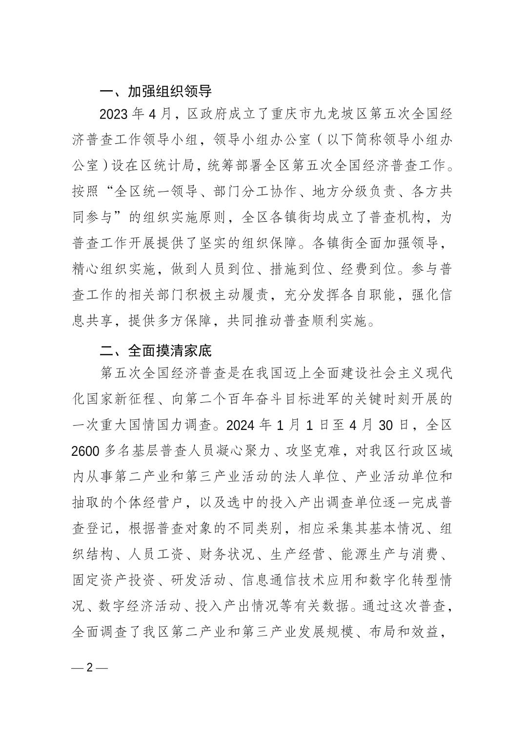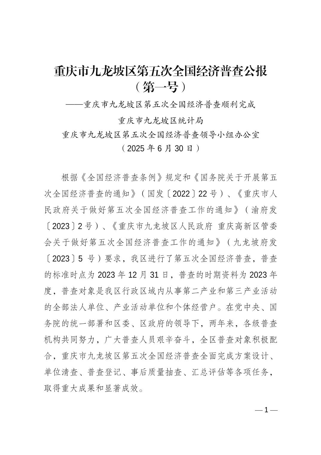 重慶市九龍坡區(qū)第五次全國經濟普查公報 (第一號)