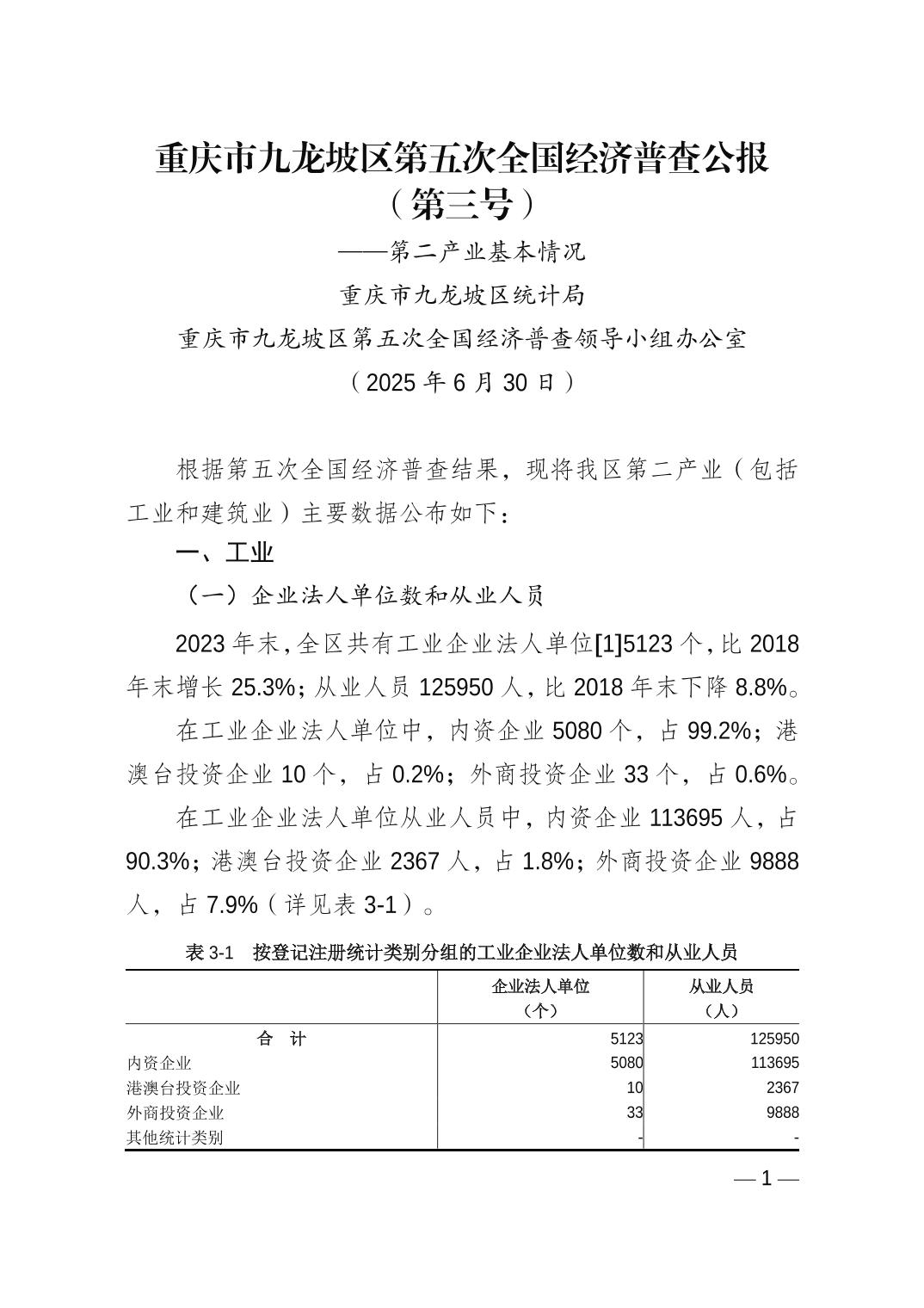 重慶市九龍坡區(qū)第五次全國(guó)經(jīng)濟(jì)普查公報(bào) (第三號(hào))