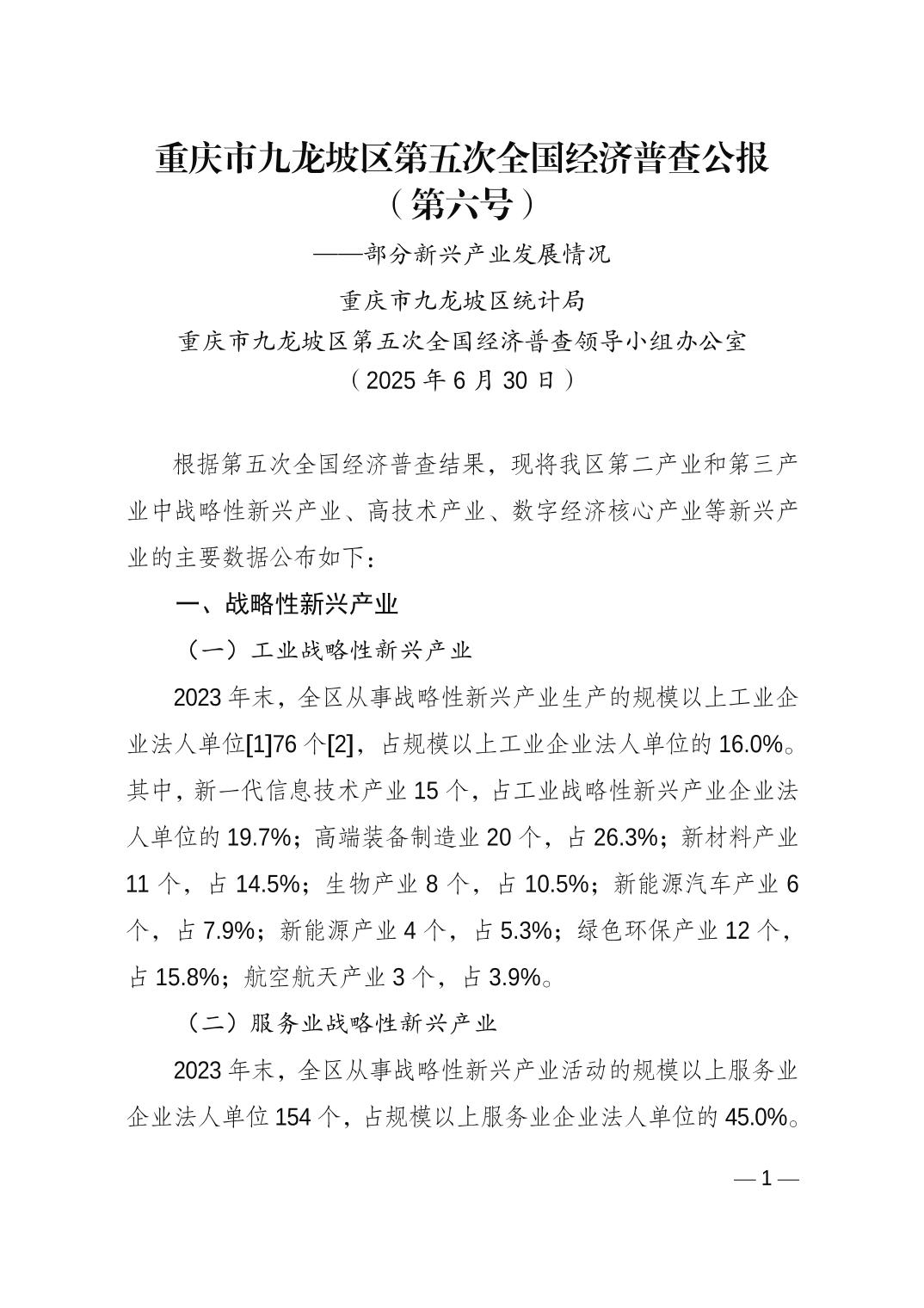 重慶市九龍坡區(qū)第五次全國經(jīng)濟(jì)普查公報 (第六號)