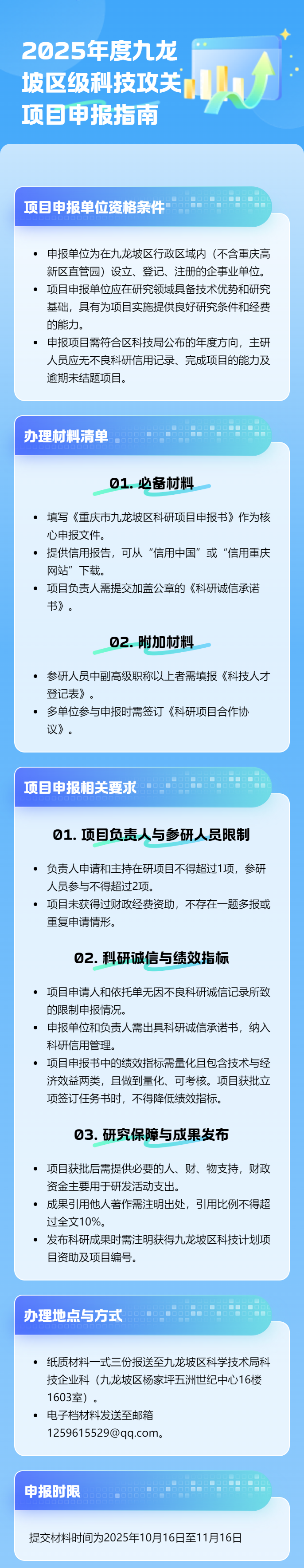2025年度九龍坡區(qū)級科技攻關(guān)項目申報指南