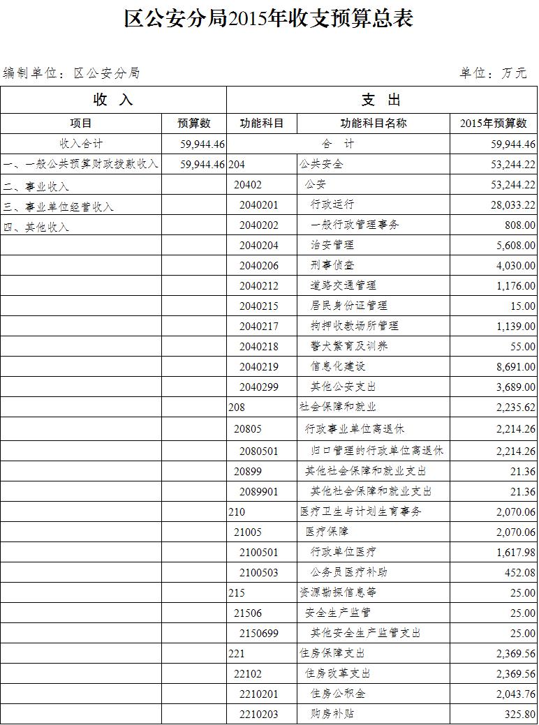 1.區(qū)公安分局2015年收支預(yù)算總表