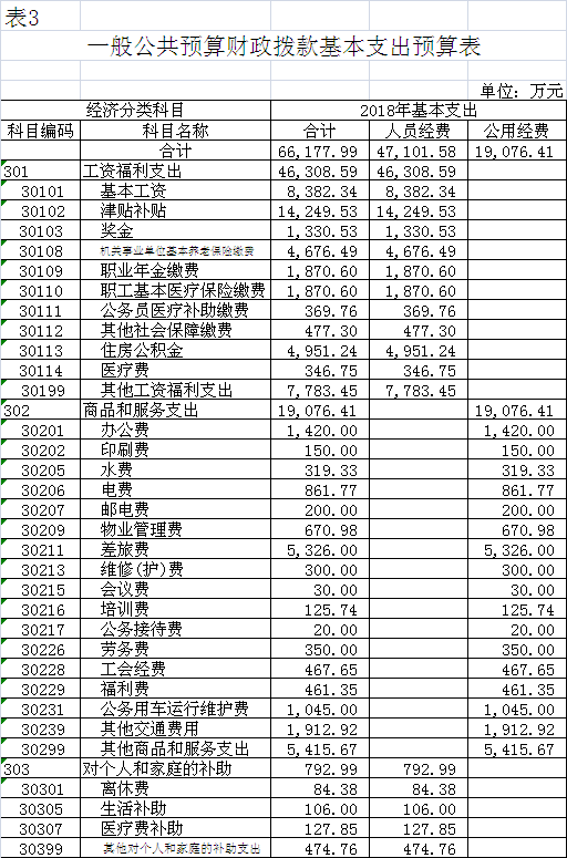 2018年一般公共預(yù)算基本支出66177.99萬(wàn)元,其中: