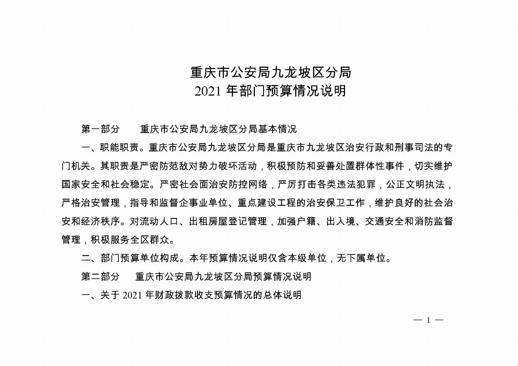 重慶市公安局九龍坡區(qū)分局2021年部門(mén)預(yù)算情況說(shuō)明