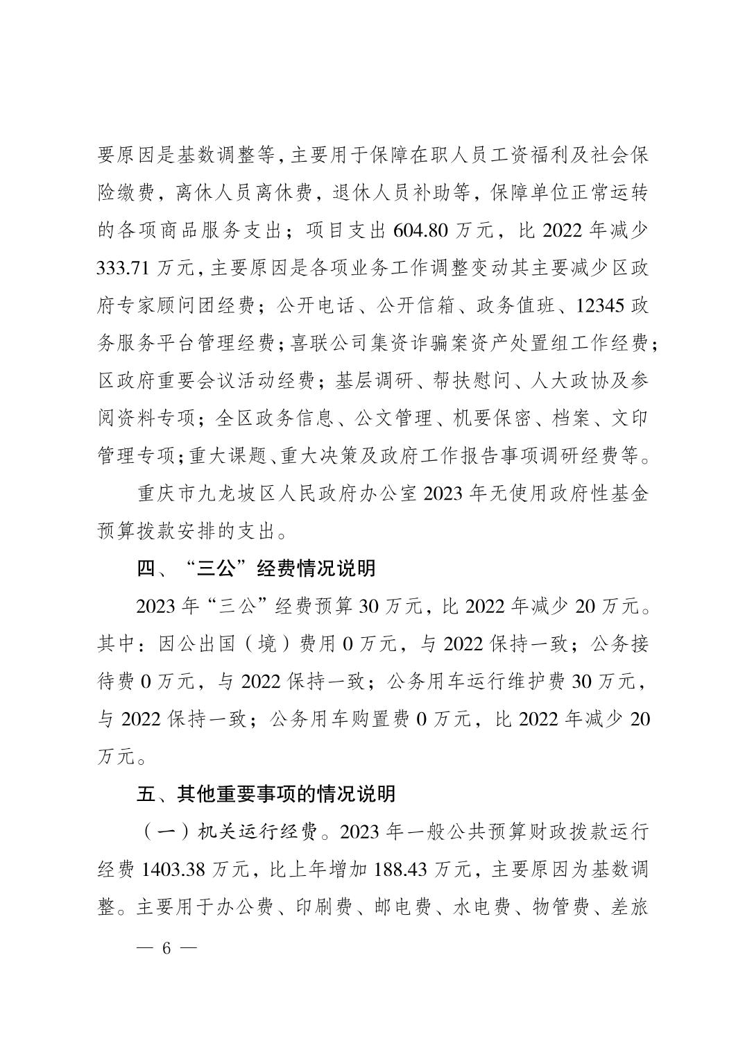 重慶市九龍坡區(qū)人民政府辦公室2023年單位預(yù)算情況說(shuō)明