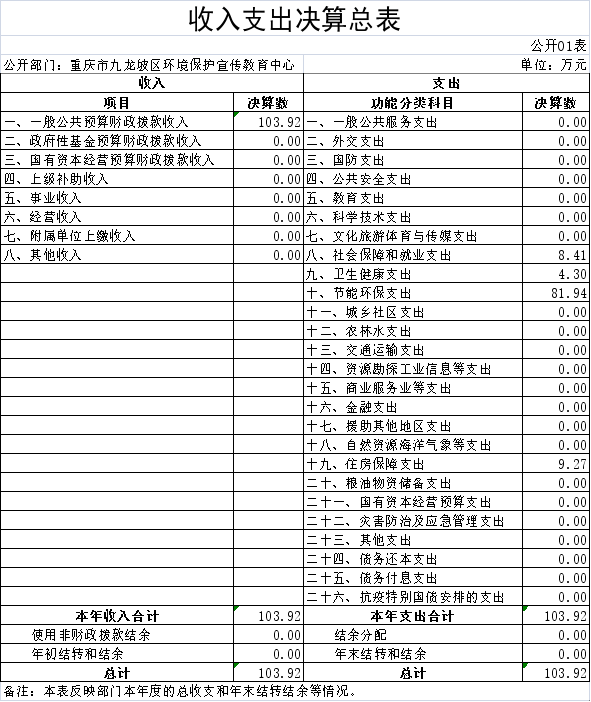 重慶市九龍坡區(qū)環(huán)境保護宣傳教育中心2023年度決算情況說明