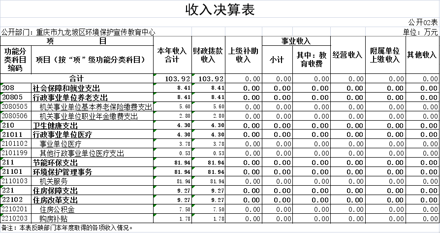 公開部門:重慶市九龍坡區(qū)環(huán)境保護宣傳教育中心單位:萬元 | |||||||