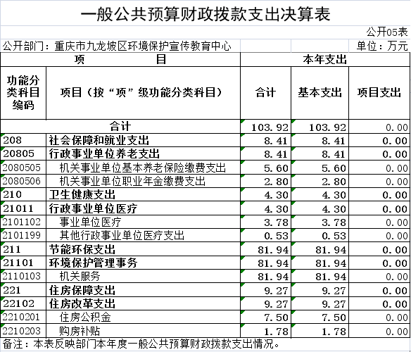 2023年度財政撥款收、支總計103.92萬元。與2022年相比,財政撥款收、支總計各減少4.78萬元,下降4.40%。主要原因是人員薪資調整。