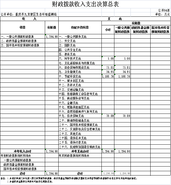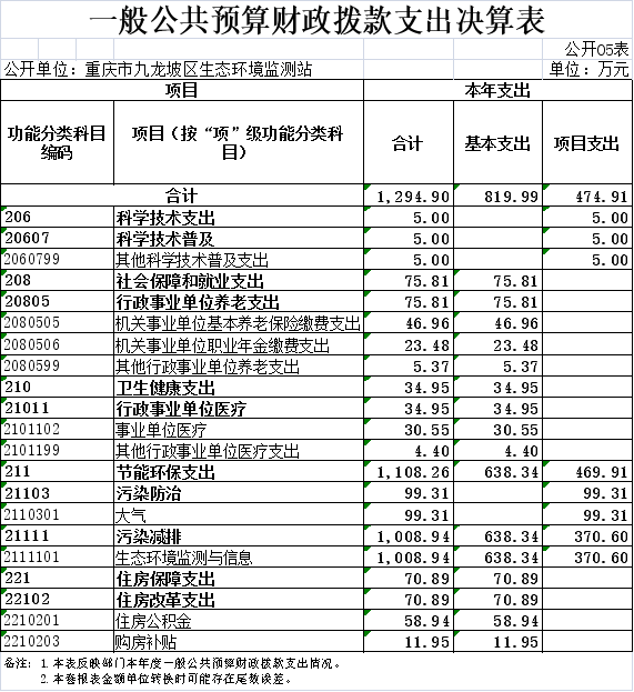 重慶市九龍坡區(qū)生態(tài)環(huán)境監(jiān)測站2023年度決算情況說明