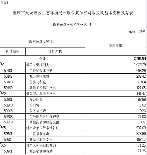 4.2025年重慶市九龍坡區(qū)生態(tài)環(huán)境局一般公共預(yù)算財(cái)政撥款基本支出預(yù)算表(政府預(yù)算支出經(jīng)濟(jì)分類科目)