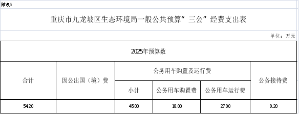 5.2025年重慶市九龍坡區(qū)生態(tài)環(huán)境局一般公共預(yù)算三公經(jīng)費(fèi)支出表