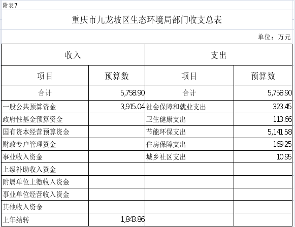 7.2025年重慶市九龍坡區(qū)生態(tài)環(huán)境局收支總表