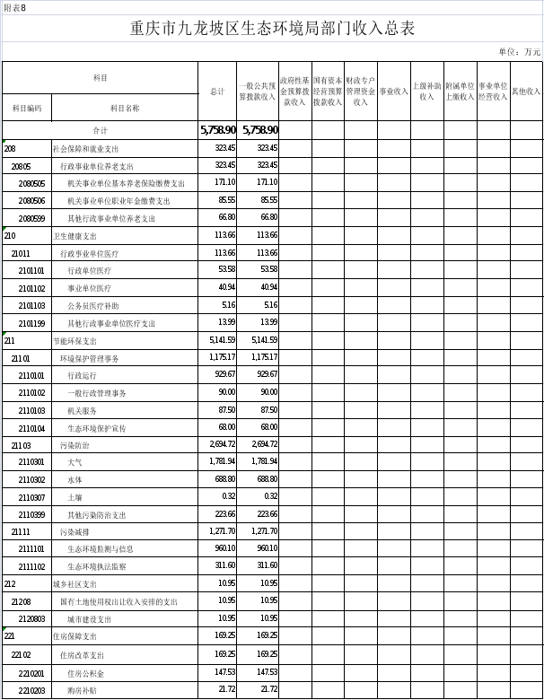 8.2025年重慶市九龍坡區(qū)生態(tài)環(huán)境局收入總表