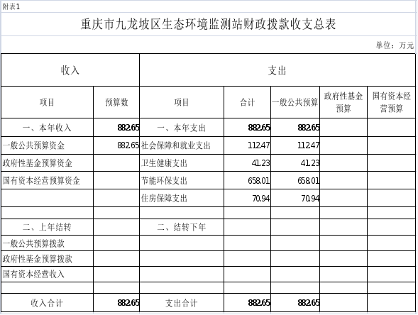 附表:1.2025年重慶市九龍坡區(qū)生態(tài)環(huán)境監(jiān)測站財政撥款收支總表
