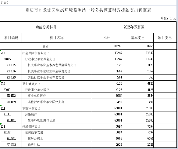 2.2025年重慶市九龍坡區(qū)生態(tài)環(huán)境監(jiān)測站一般公共預(yù)算財政撥款支出預(yù)算表