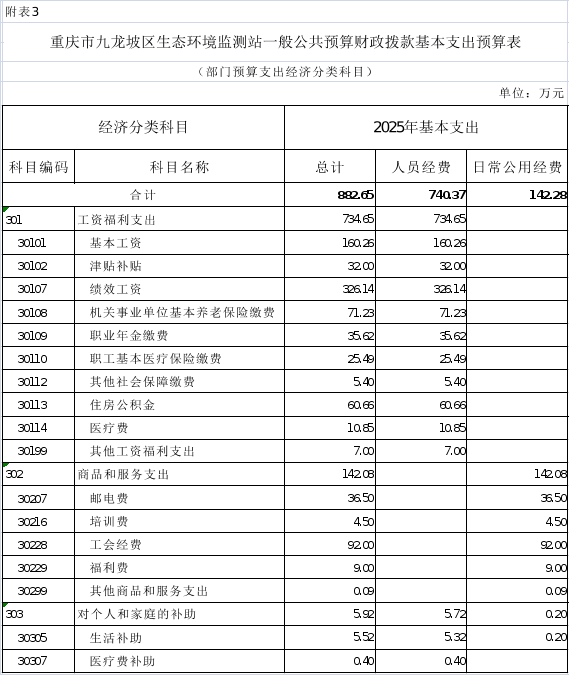 3.2025年重慶市九龍坡區(qū)生態(tài)環(huán)境監(jiān)測站一般公共預(yù)算財政撥款基本支出預(yù)算表