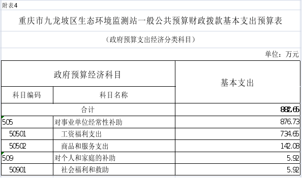 4.2025年重慶市九龍坡區(qū)生態(tài)環(huán)境監(jiān)測站一般公共預(yù)算財政撥款基本支出預(yù)算表(政府預(yù)算支出經(jīng)濟分類科目)