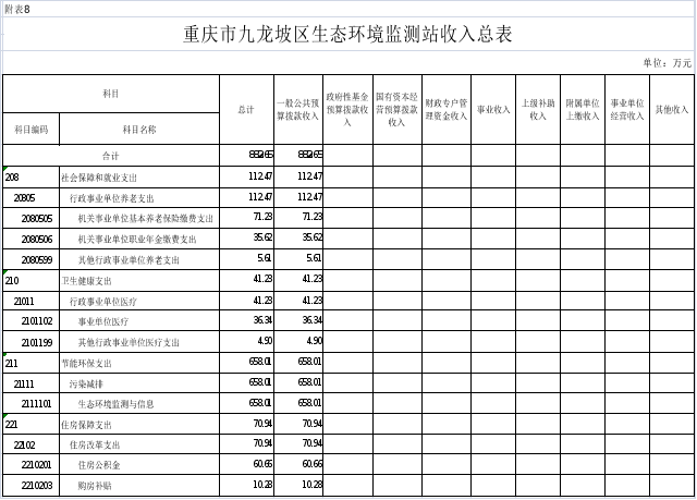 8.2025年重慶市九龍坡區(qū)生態(tài)環(huán)境監(jiān)測站收入總表