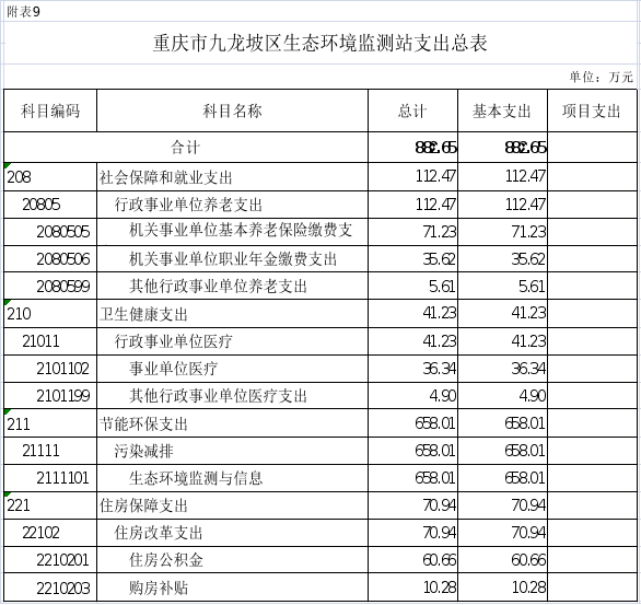 9.2025年重慶市九龍坡區(qū)生態(tài)環(huán)境監(jiān)測站支出總表(功能科目分類到項)