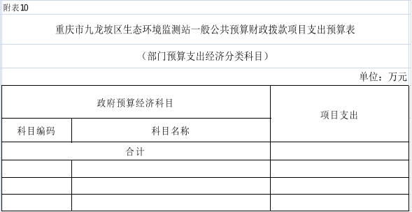 10.2025年重慶市九龍坡區(qū)生態(tài)環(huán)境監(jiān)測站一般公共預(yù)算財政撥款項目支出預(yù)算表(部門經(jīng)濟分類科目)