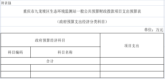 11.2025年重慶市九龍坡區(qū)生態(tài)環(huán)境監(jiān)測站一般公共預(yù)算財政撥款項目支出預(yù)算表(政府經(jīng)濟分類科目)