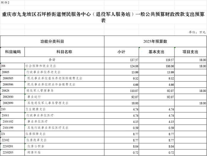 2.2025年九龍坡區(qū)石坪橋街道退役軍人服務(wù)站一般公共預(yù)算財政撥款支出預(yù)算表
