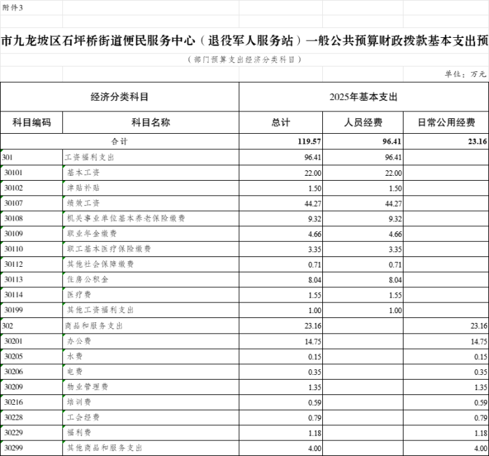 3.2025年九龍坡區(qū)石坪橋街道退役軍人服務(wù)站一般公共預(yù)算財政撥款基本支出預(yù)算表