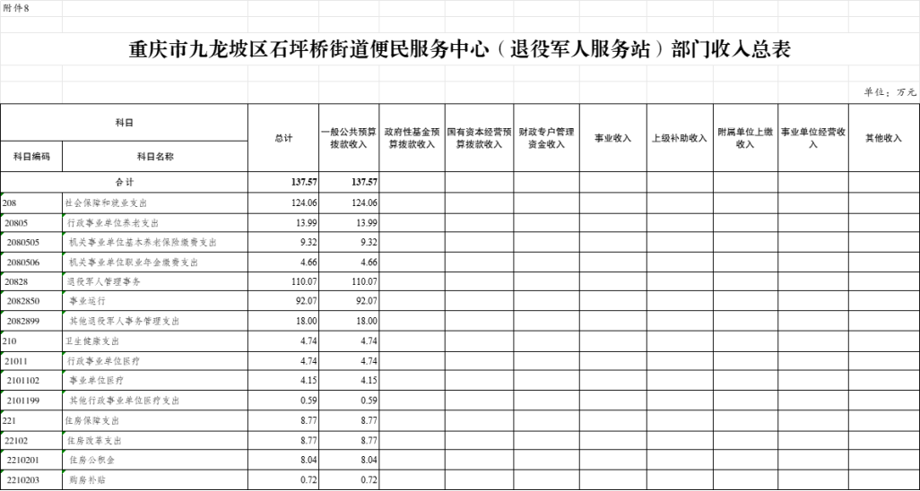8.2025年九龍坡區(qū)石坪橋街道退役軍人服務(wù)站單位收入總表